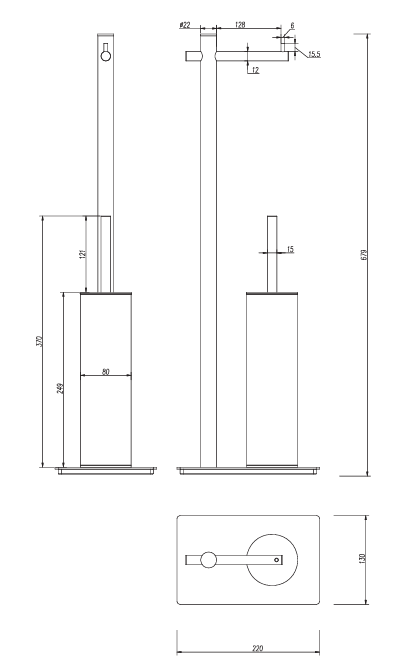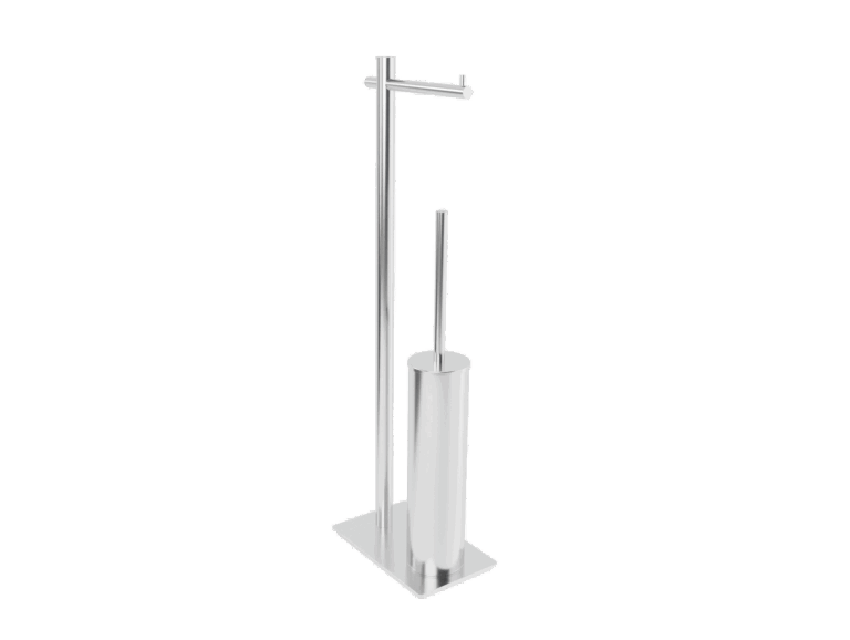 El escobillero con portarrollos de la serie PRACTIC ofrece funcionalidad y durabilidad en cualquier espacio. Su acabado cromo es elegante, ideal para entornos tanto comerciales como residenciales. Está disponible en otros acabados: acero inox, negro mate, black gun metal, oro cepillado y oro rosa cepillado. Su diseño compacto y práctico permite una fácil instalación y mantenimiento, asegurando una solución eficiente para mantener la limpieza y orden en baños, cocinas y áreas de servicio. Fabricado en acero inoxidable de alta calidad S.316, combina resistencia a la corrosión